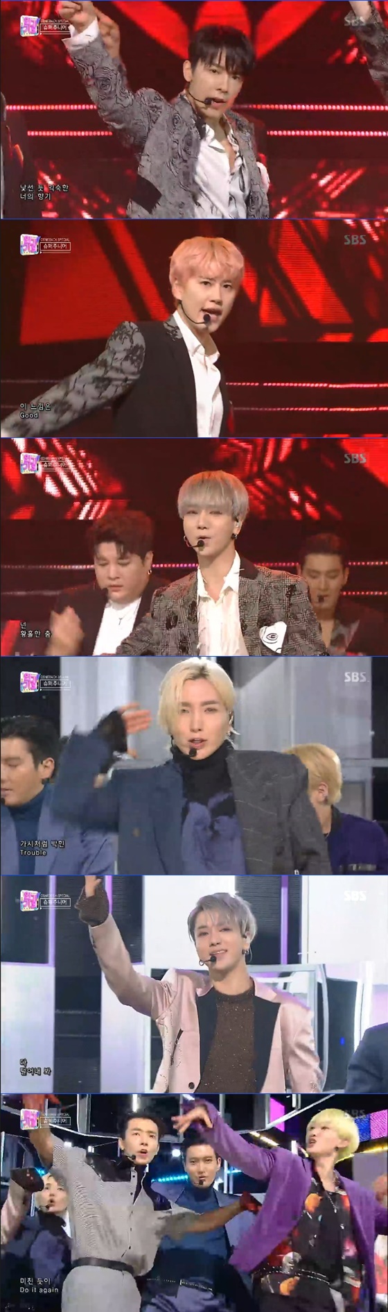 '인기가요' 완전체 슈퍼주니어가 곡 'SUPER Clap'(슈퍼 클랩)으로 컴백했다.