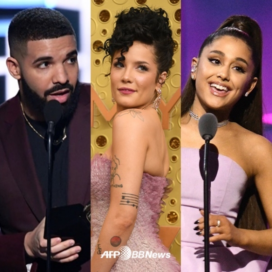 (왼쪽부터) 드레이크, 할시, 아리아나 그란데 /AFPBBNews=뉴스1