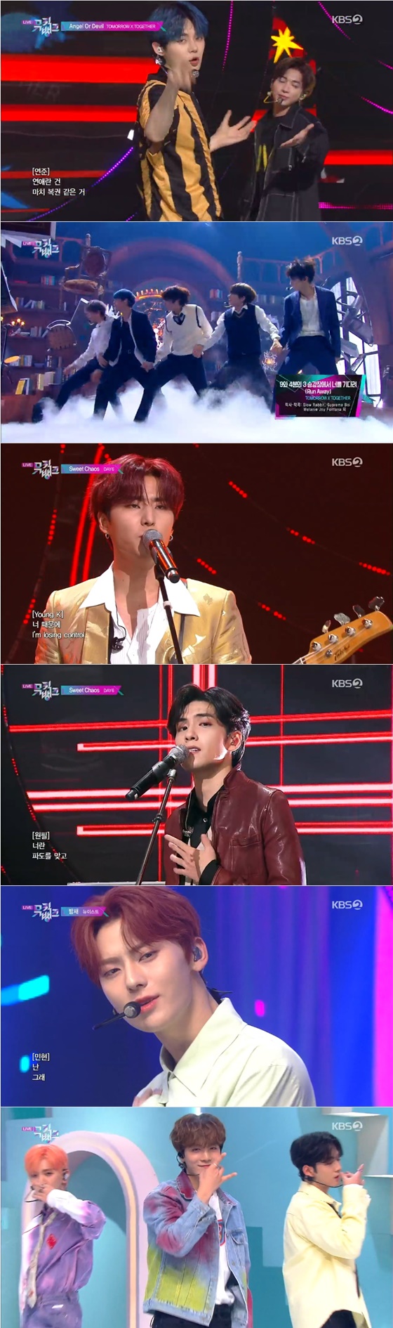 한편 이날 '뮤직뱅크'에서는 투모로우바이투게더, 데이식스, 뉴이스트가 컴백했다. 먼저 투모로우바이투게더는 수록곡 'Angel Or Devil'로 컴백 무대 포문을 열었다. 이어 교복 차림으로 타이틀곡 '9와 4분의 3 승강장에서 너를 기다려'에 맞춰 무대를 꾸몄다. 투모로우바이투게더는 톡톡 튀는 소년들의 매력을 뽐냈다.