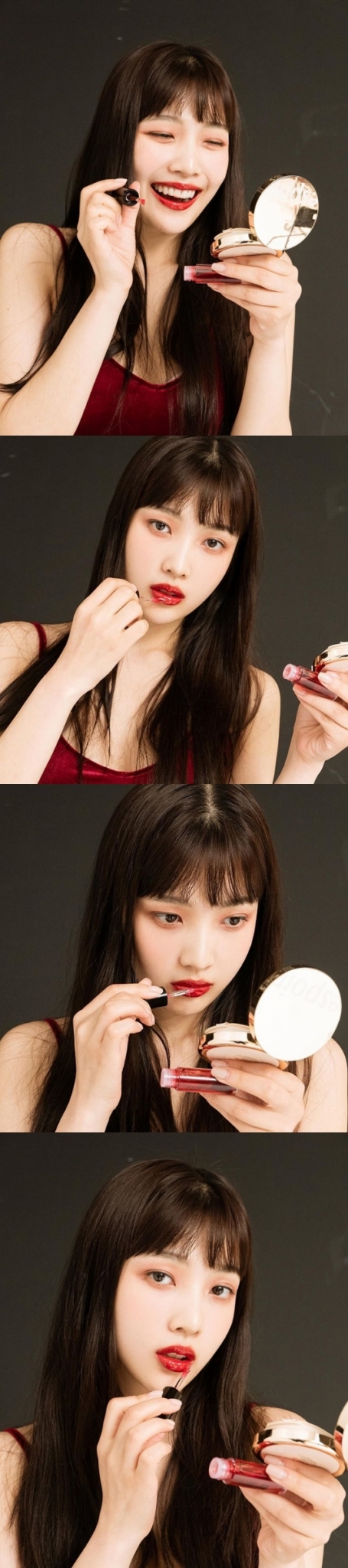 사진 속 조이는 립스틱을 바르며 고혹적인 표정으로 카메라를 바라보다가도 립스틱을 이에 묻혀 천진난만하게 웃는 모습을 보이기도 했다.