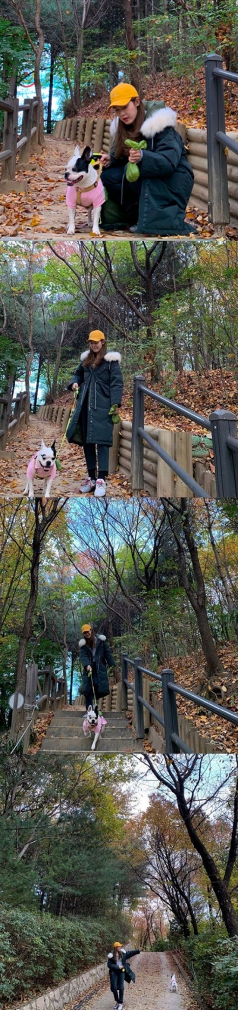 그룹 핑클 출신 배우 성유리가 반려견과 산책하는 일상을 공개했다.