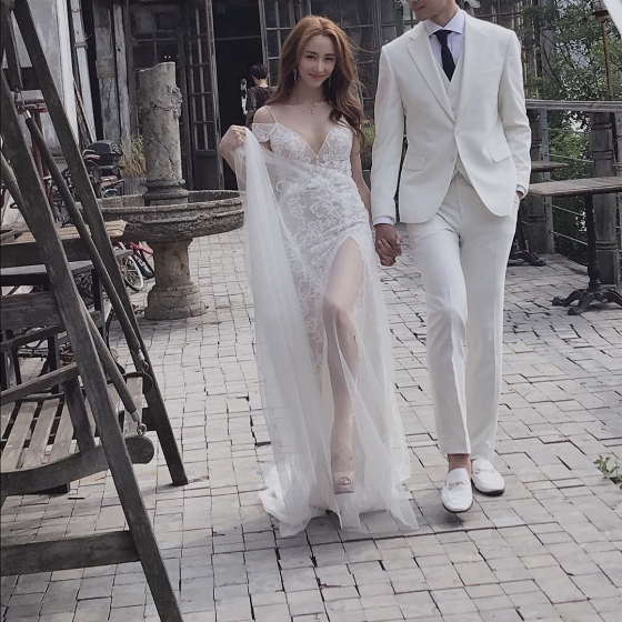 선데이는 18일 자신의 인스타그램을 통해 "#김보하선생님 #열정 #감사해요"라는 글과 함께 사진을 게재했다. 공개된 사진 속 선데이는 시스루 풍의 웨딩드레스를 입고 예비 신랑의 손을 잡은 채 걷고 있다. 선데이는 긴 기럭지와 밝은 미소로 예비 신부의 미모를 마음껏 표현했다.