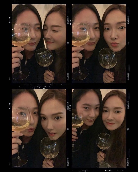 공개된 사진 속 제시카는 동생 크리스탈과 함께 얼굴을 맞대고 카메라를 응시하고 있다. 함께 와인잔을 들고 장난을 치는 듯한 표정을 짓고 있어 귀여움을 보여주고 있다.