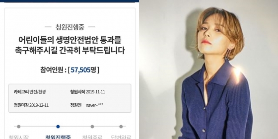 '민식이법'은 지난 18일 오후 채널A 예능 프로그램 '아이콘택트'에 김민식 군의 부모가 출연해 또다시 화두에 올랐다. 이에 선예도 부모의 마음으로 청원 서명에 동참한 것.