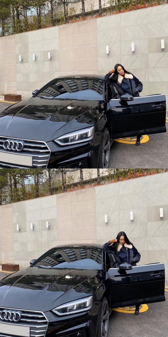 공개된 사진 속 크리스탈은 차 문을 연 채 차에 기대고 있다. 검은색 양털 라이더자켓과 크리스탈의 차가 어울려 고급미를 드러내고 있다.