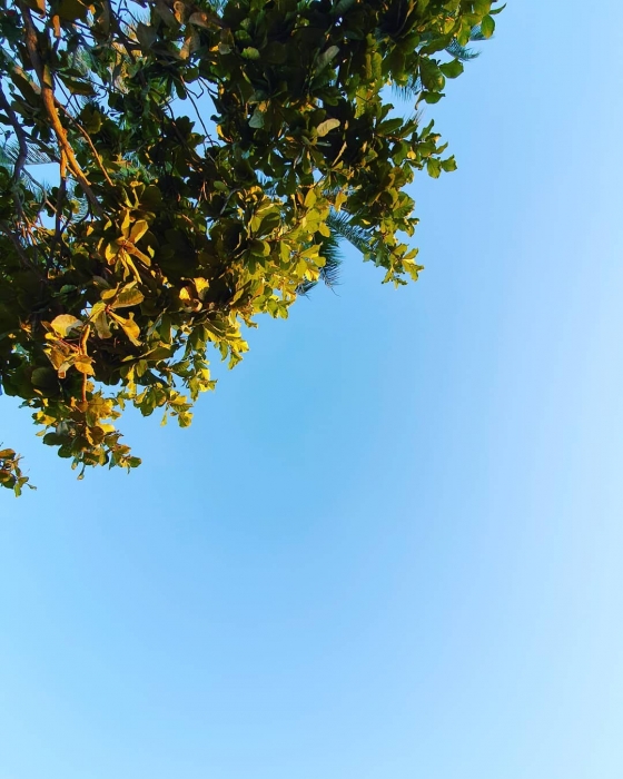 공개된 사진에는 구름 한 점 없는 맑은 하늘에 나뭇잎이 있는 배경이 담겨있다.