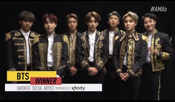 마지막으로 페이보릿 소셜 아티스트(Favorite Social Artist) 수상 소감으로는 "정말 감사하다. 페이보릿 소셜 아티스트 상을 받아서 정말 황홀하다. 투어로 인해 시상식 자리에 함께하지는 못 했다. 미국에서 마지막 투어에서 많은 사랑과 지지를 받았다. 특별한 시상식에 저희를 위해 투표를 해주셔서 아미에게 정말 너무나 감사하다. AMA 시상식에도 감사드린다"라며 연신 감사함을 전했다.