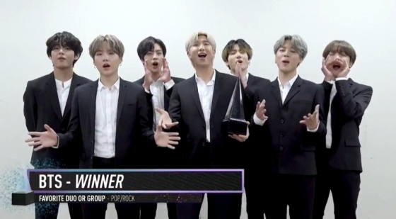 그룹 방탄소년단(RM 진 슈가 제이홉 지민 뷔 정국)이 24일(현지 시각) 미국 로스앤젤레스 마이크로소프트 공연장에서 열린 '2019 아메리칸 뮤직 어워즈(이하 2019 AMAs)'에서 3관왕에 오르는 기염을 토한 가운데 국내외로 축하 행렬이 이어지고 있다.