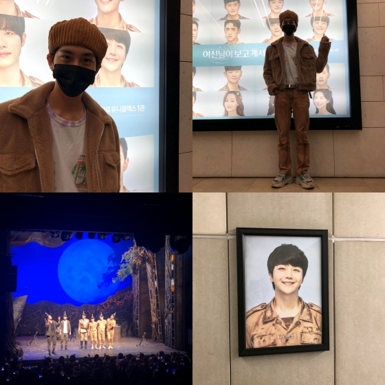공개된 사진 속에는 신원은 검은색 마스크를 끼고 두꺼운 갈색 아우터와 모자를 쓰고 있다. 특히 진호가 현재 공연 중인 뮤지컬 '여신님이 보고 계셔' 전광판 앞에서 사진을 찍어 진호를 응원했다. 키노는 진호를 응원 간 펜타곤 멤버들 전체 사진을 올렸다.