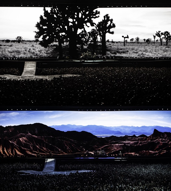 황금색 배경의 비디오 스크린에는 은색 조슈아 트리가 그려지며 비디오 스크린 위까지 뻗어 나온 조슈아 트리의 그림자처럼 메인 스테이지에서 관객석으로 이어지는 B 스테이지(돌출 무대)가 설치된다.