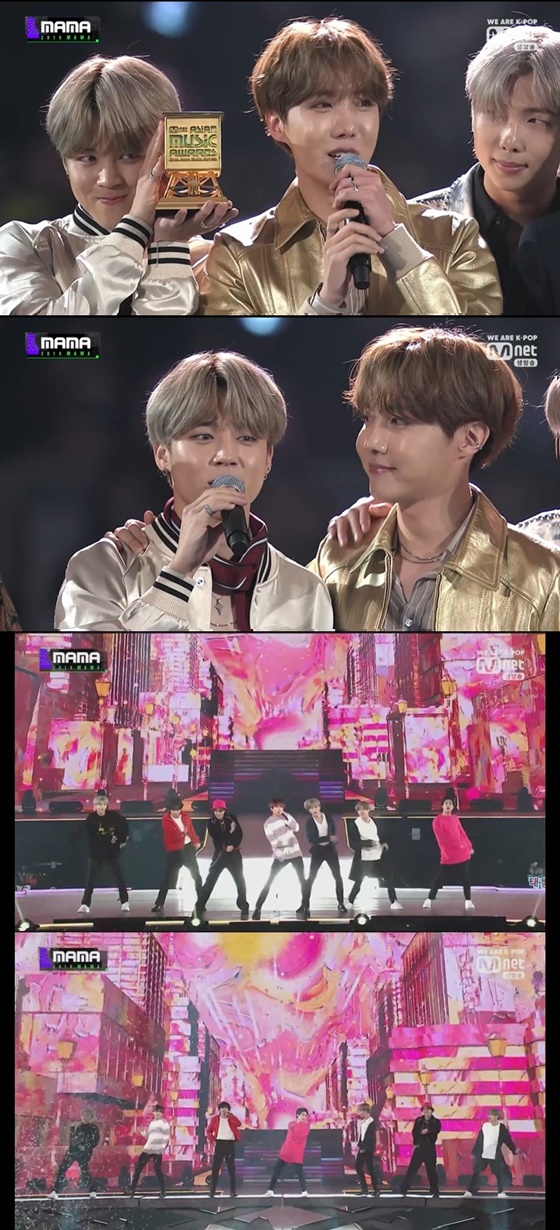 그룹 방탄소년단이 '2019 마마(2019 Mnet Asian Music Awards, 2019 MAMA)'에서 '올해의 앨범상', '월드 아이콘 오브 더 이어', '올해의 노래상', '올해의 가수상'까지 4개의 대상을 휩쓸었다.