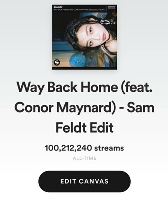 싱어송라이터 숀(SHAUN)의 '웨이 백 홈(Way Back Home)'이 5일 세계 최대 음원 사이트 스포티파이(Spotify)에서 1억 스트리밍 돌파함과 동시에 각종 해외 차트에서 기념비적인 성적을 기록했다.