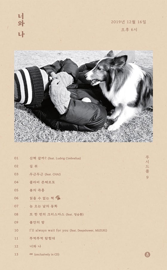 루시드폴은 10일 전 온라인 서적 판매 사이트를 통해서 정규 9집 음반이자 책인 '너와 나'의 예약판매를 시작하고, 총 13트랙의 트랙리스트를 공개했다.