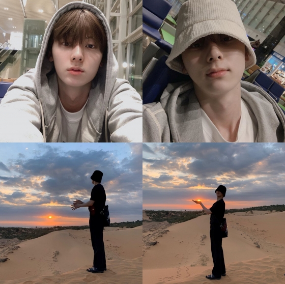 그룹 뉴이스트 멤버 황민현이 여행지에서 훈훈한 일상 사진을 공개했다.