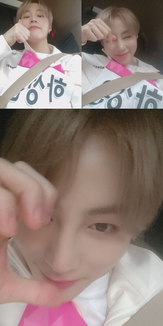 글과 함께 공개된 사진에서 하성운은 자신의 이름이 크게 적힌 운동복을 입고 차 안에서 애교 포즈를 취하고 있다. 그는 카메라를 향해 엄지, 작은 손가락 하트, 손을 구부려 만드는 반쪽 하트 등을 보내며 상큼한 눈웃음을 지어보였다.