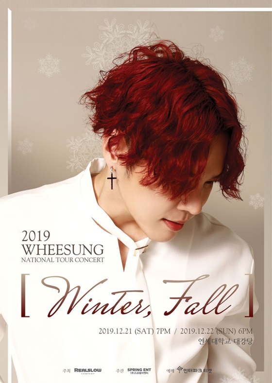 소속사 리얼슬로우컴퍼니는 18일 공식 홈페이지에 "휘성의 전국투어 콘서트 'WInter, Fall'이 아티스트의 건강상 문제로 취소됐다"고 밝혔다.
