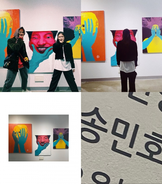 공개된 사진 속 제니는 송민호의 작품을 구경하고 있다. 특히 송민호와 함께 익살스러운 표정을 지으며 인증 사진을 함께 찍어 훈훈함을 보여줬다.