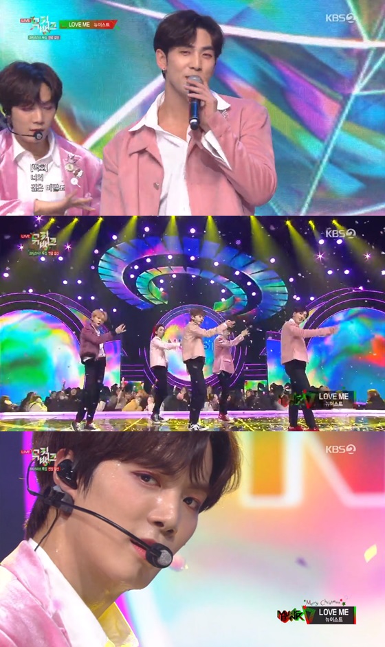 이날 방송에서 뉴이스트는 미니 7집 'The Table'(더 테이블)의 수록곡 'BET BET'(벳벳)과 타이틀곡 'LOVE ME'(러브 미)를 연이어 불렀다.