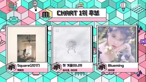 공개된 1위 후보는 백예린의 'Square(2017), 성시경, 아이유의 '첫 겨울이니까', 아이유의 'Blunming'이었다.