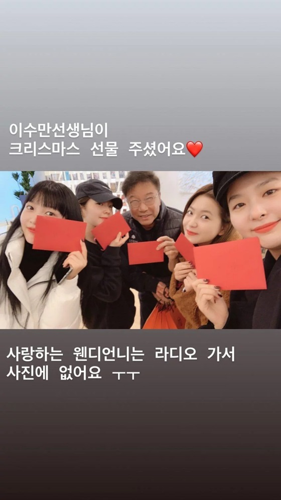 조이는 23일 자신의 인스타그램 스토리에 "이수만 선생님이 크리스마스선물 주셨어요"라는 글과 함께 사진을 게재했다.