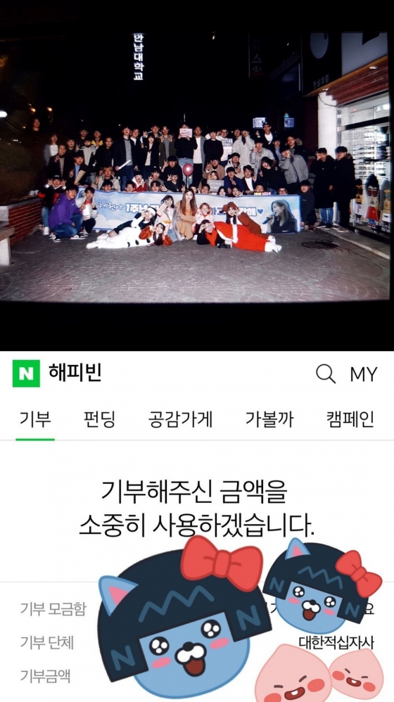 흰은 네이버 해피빈으로 대한적십자사에 기부했다. 이에 네티즌들은 "내년에도 언니 활동 기대할게요. 사랑합니다 진짜로", "1주년 너무 축하드려요! 1주년 가족사진을 찍어서 영광이에요. 앞으로도 좋은 음악 감사합니다~♡" 등 댓글을 달았다.
