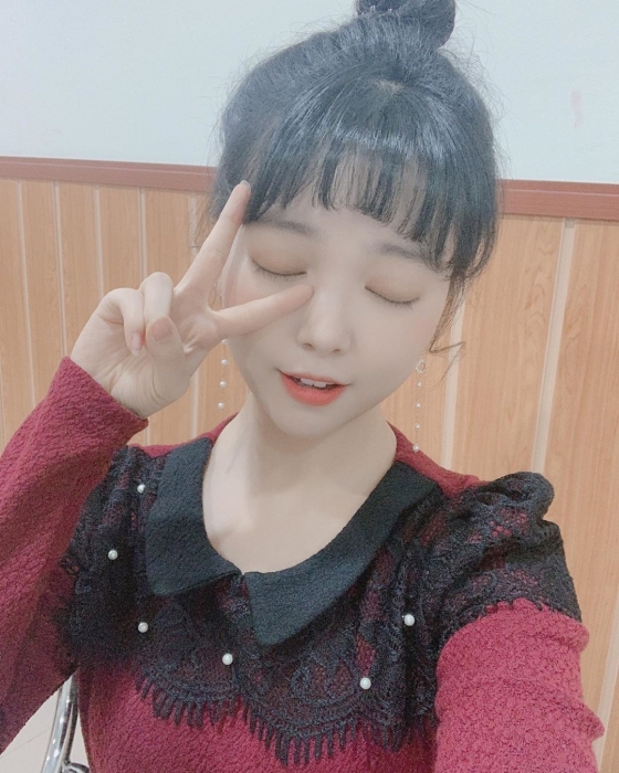 이어 공개된 사진 속 요요미는 두 눈을 감고 한 손으로 브이 포즈를 취하고 있다.