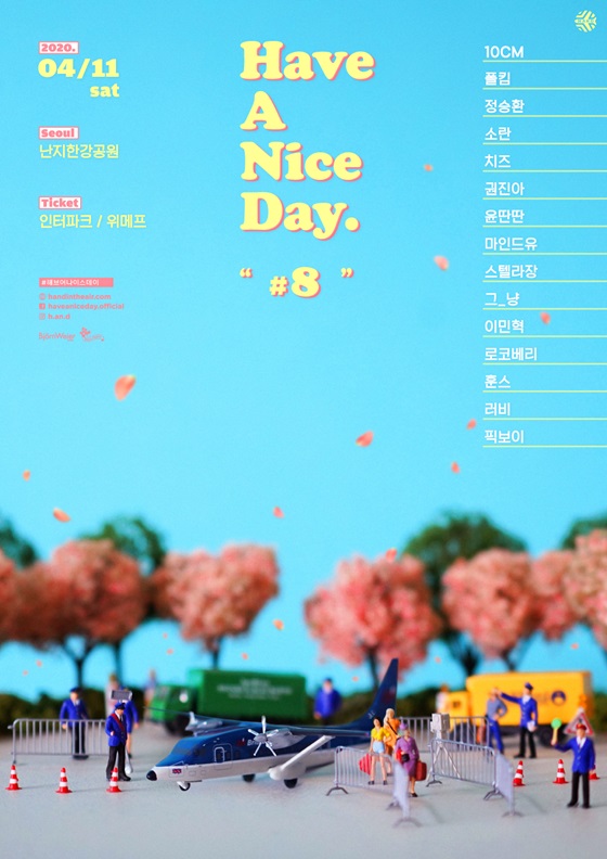 '해브어나이스데이 #8' 오는 4월 11일 토요일 난지한강공원에서 열린다. 티켓 예매는 28일 화요일 오후 2시부터 인터파크와 위메프에서 진행된다.