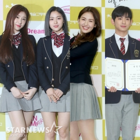 전소미, 류진, 채령, 이의웅은 7일 오전 한림예술고등학교에서 진행되는 졸업식에 참석했다. 이들 모두 이날 졸업식을 통해 고등학교 생활에 마침표를 찍게 됐다. 이날 한림예고가 선정한 공로상 수상자로 전소미, 채령, 류진과 JTBC '슈퍼밴드' 출신 김영소 등이 선정되는 기쁨을 안았다.