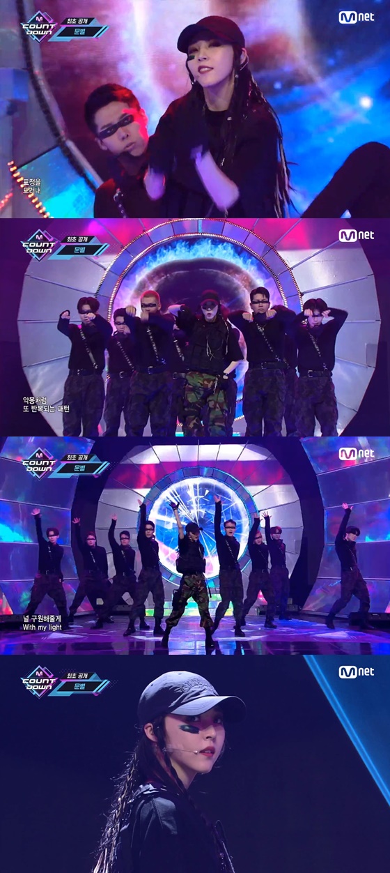문별은 지난 13일 오후 방송된 엠넷 음악순위 프로그램 '엠카운트다운'에서 두 번째 미니앨범 'DARK SIDE OF THE MOON'의 타이틀곡 '달이 태양을 가릴 때 (Eclipse)' 무대를 최초 공개했다.