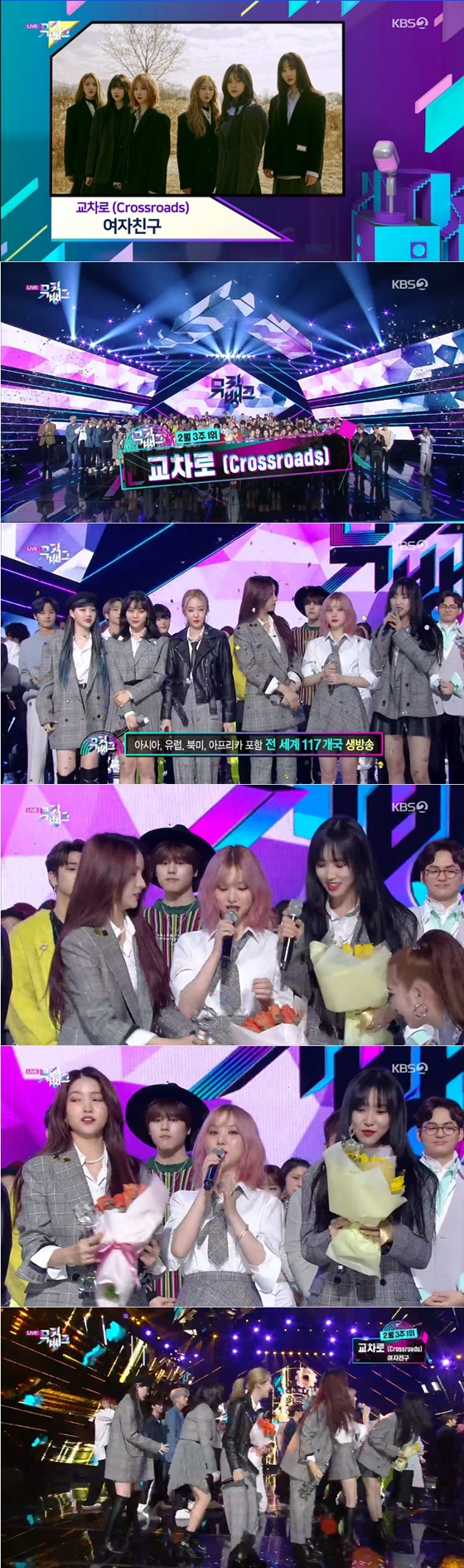 여자친구의 '교차로'는 아름다운 선율을 바탕으로 강렬한 스트링 사운드와 신스의 반전이 돋보이는 댄스 곡이다. 1위를 차지한 여자친구는 "이 상은 버디(여자친구 팬클럽 이름)꺼다. 너무 좋다. 이 순간 정말 행복하다. 저희를 응원해주시는 버디 너무 감사하다"며 팬들을 향해 거듭 감사의 인사를 전했다.