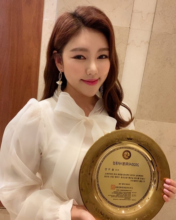지난 19일 송가인은 자신의 인스타그램에 "뜻깊은 상 주셔서 감사합니다♥"라는 글과 함께 사진을 게재했다.