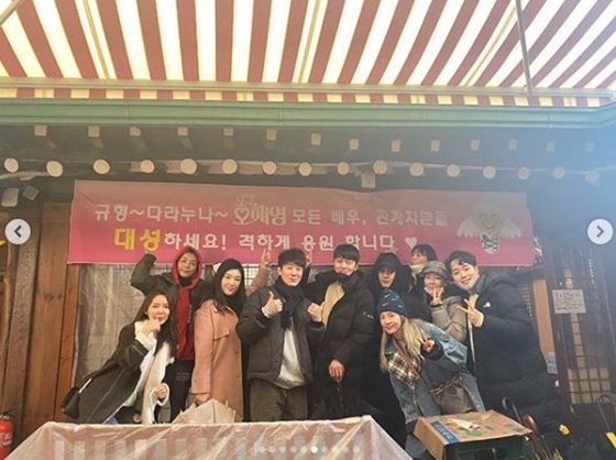 공개된 사진 속 산다라박은 '규형~다라 누나~또 오해영 모든 배우, 관계자 분들 대성하세요. 격하게 응원합니다'는 문구가 적힌 현수막 앞에서 포즈를 취하고 있다. 이는 대성이 소속사 YG엔터테인먼트에서 한솥밥을 먹고 있는 산다라박을 비롯해 뮤지컬 '또 오해영' 팀을 응원하기 위해 삼계탕을 선물한 것으로 보인다.