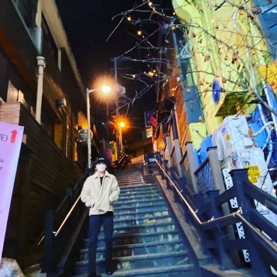 공개된 사진 속 세훈은 아무도 없는 계단 위에 서 있다. 그는 코로나19 유행으로 흰 마스크와 모자를 쓰고 카메라를 응시했다.