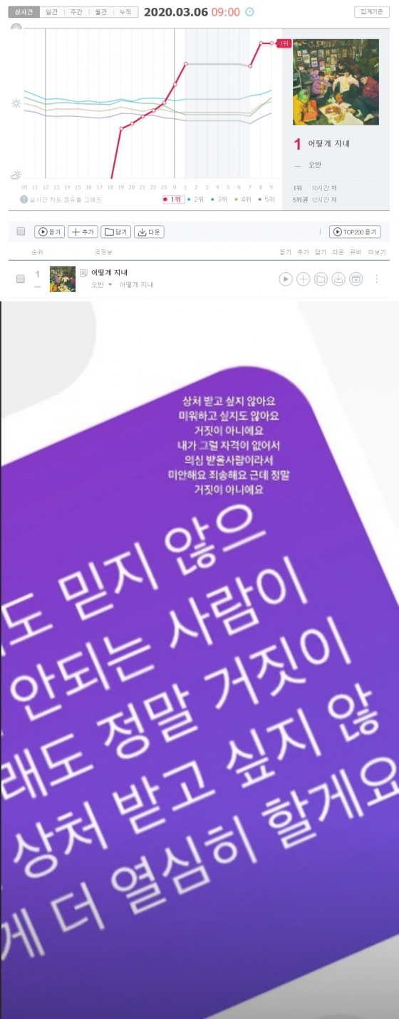 가수 오반이 음원 1위에 심경을 토로했다.