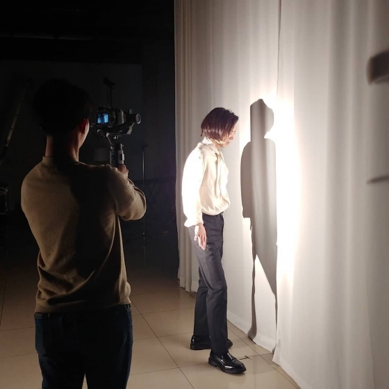 가수 양준일이 광고 비하인드 사진을 게재했다.