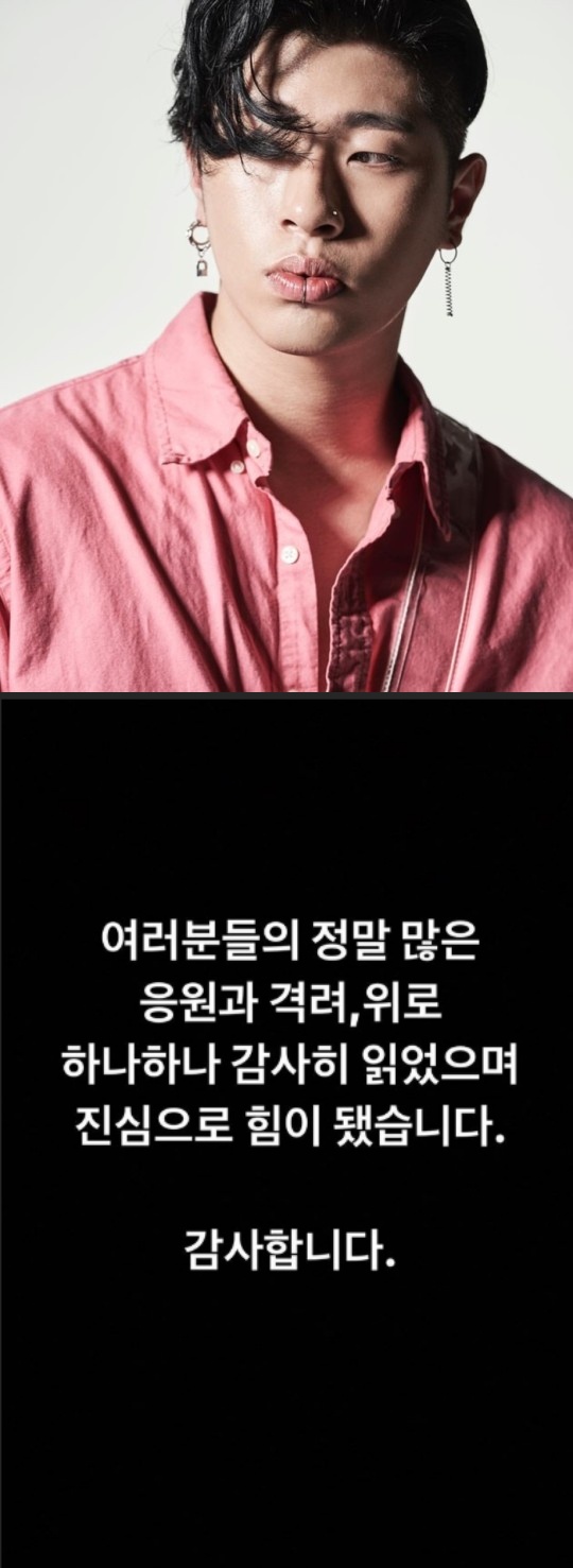 10일 오반은 자신의 인스타그램 스토리로 "여러분의 정말 많은 응원과 격려, 위로 하나하나 감사히 읽었으며 진심으로 힘이 됐습니다. 감사합니다"라는 글을 남겼다.