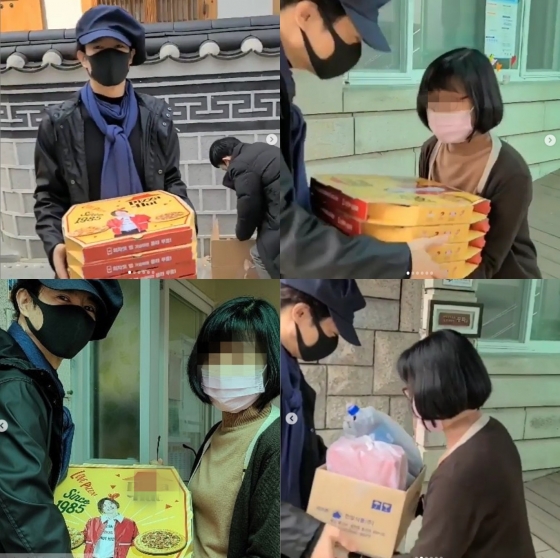 공개된 영상 속 양준일은 자신이 모델로 출연 중인 한 피자 브랜드의 피자와 스파게티, 콜라를 들고 기부처에 나눠주고 있다.