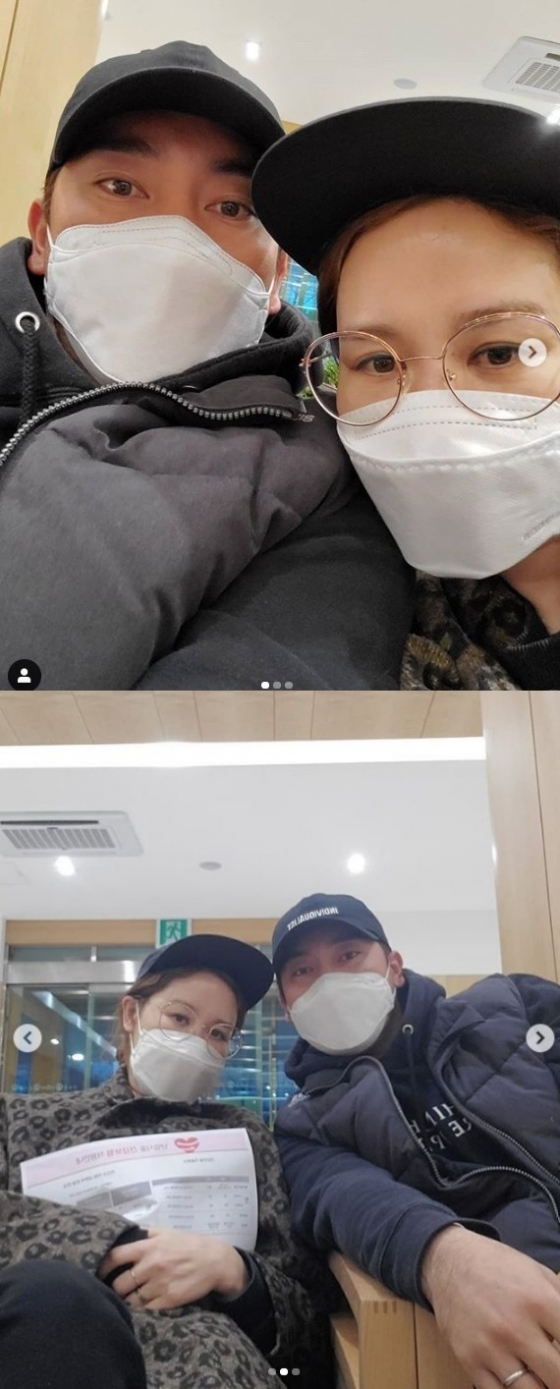 공개된 사진 속 채리나는 남편 박용근과 다정하게 사진을 찍고 있다. 둘은 한 산부인과에 마스크를 끼고 진단서를 안고 앉아 있다.
