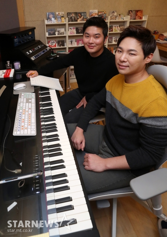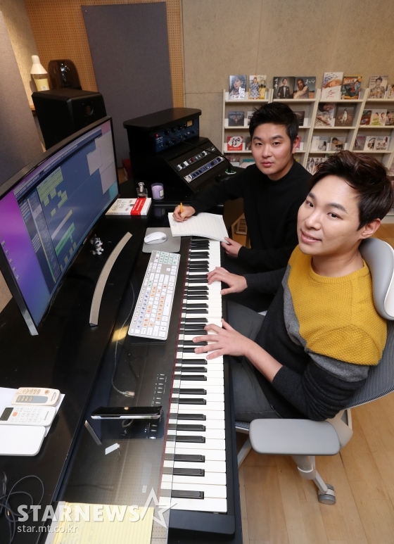 김▶형하고는 3년 반 정도 같이 작업했고요. 예전에는 성인가요 시장에서 공동 작곡 개념이 없었는데 저희가 아마 공동 작업을 하는 최초 작곡가가 되지 않나 싶어요. 저희로 인해 성인가요 내 작곡 시스템도 바뀐 부분이 있다면 작곡가가 가수와 협업을 하면서 서로 고민도 하고 가수가 작사에도 참여하면서 함께 작품을 만들어가는 부분이라고 생각해요.