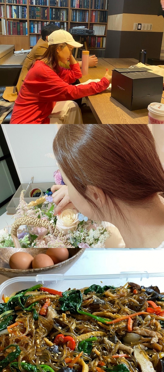 공개된 사진 속 백지영은 스튜디오 안에 앉아 사진을 찍고 있다. 이어 꽃다발을 바라 보고있는 사진을 공개해 훈훈함을 자아냈다.