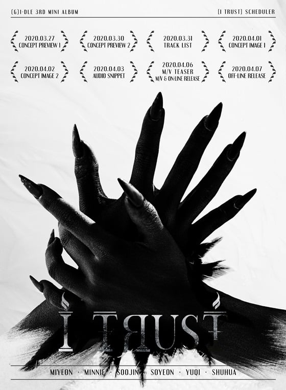 (여자)아이들의 세 번째 미니앨범 'I trust'는 오는 4월 6일 오후 6시 각종 온라인 음원사이트를 통해 공개된다.