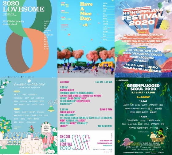 먼저 4월 4일 서울 노들섬에서 열릴 예정이었던 '러브썸 페스티벌'이 코로나19 여파로 취소를 결정했다. 주최 측은 "긴 논의 끝에 코로나19 확산 방지 및 관객과 아티스트 안전을 고려해 공연을 부득이하게 취소하기로 결정했다"고 밝혔다.