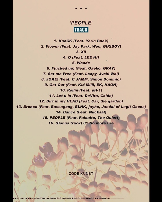 AOMG는 지난 30일 공식 SNS를 통해 정규 4집 'PEOPLE(피플)'의 전체 트랙리스트를 공개했다.
