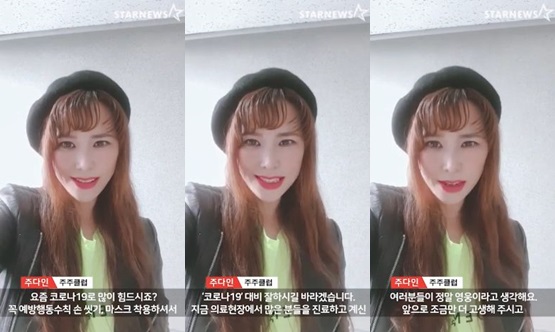 주다인은 끝으로 "모든 분들 다 코로나19 대비 잘 하셔서 잘 이겨내길 바라겠다"며 전 국민에게 응원을 보냈다.