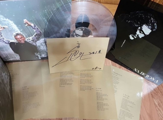 공개된 사진 속에는 나훈아에게 받은 레코드판이 담겨 있다. 해당 레코드판은 자개 장식이 있어 고급스러운 분위기를 자아냈다.