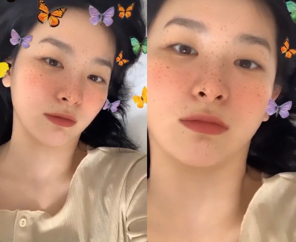 슬기는 1일 자신의 인스타그램 스토리에 주근깨와 나비 효과가 있는 카메라로 찍은 셀카를 게재했다.