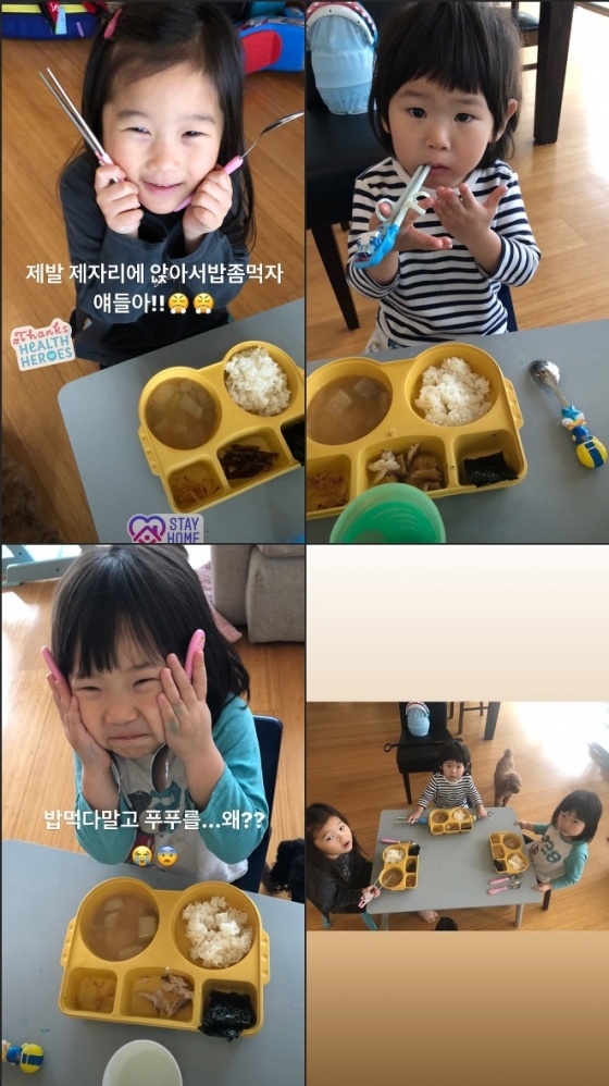 하지만 유리는 "제발 제자리에 앉아서 밥 좀 먹자 얘들아!", "밥 먹다 말고 푸푸를... 왜??"라고 글을 덧붙여 활발한 아이들의 모습을 간접적으로 전하기도 했다.