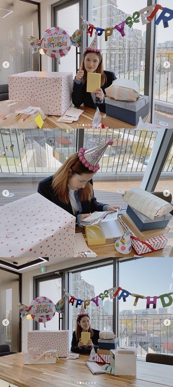 공개된 사진 속에는 생일을 맞이한 거미의 모습이 담겼다. 거미는 팬들의 선물과 편지들을 꼼꼼히 읽으며 고마움을 표했다. 특히 임신 5개월 차를 맞은 거미의 여전한 미모가 눈에 띈다.