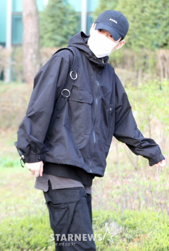 그룹 CIX 현석이 10일 오전 서울 마포구 합정동주민센터에 제21대 총선 사전투표를 하기 위해 도착하고 있다.