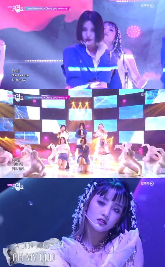 흰색 의상을 입고 무대에 오른 (여자)아이들은 화려한 퍼포먼스와 개성 넘치는 무대 매너로 시선을 사로잡았다.